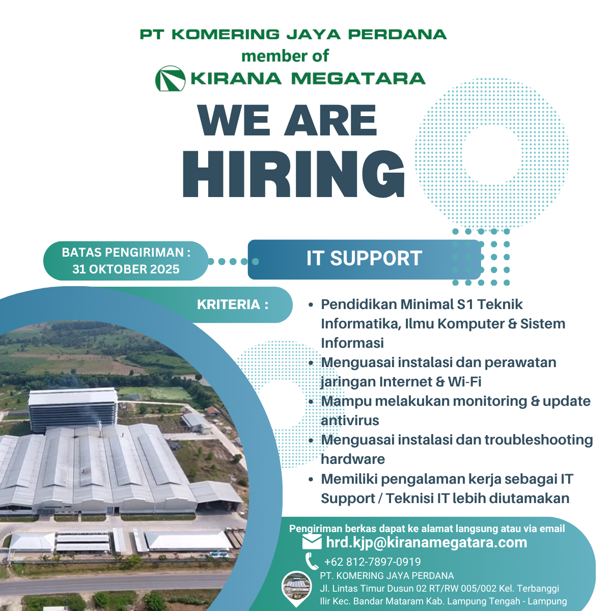 Memelihara jaringan Internet dan WIFI di lingkungan Pabrik, untuk memudahkan kegiatan operasional pabrik dan Komunikasi dengan pihak Head OfficeSupport Trouble Shooting user dala...